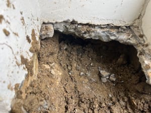 写真の案件もピンポイントで治すには推定厚さ600㎜のコンクリートを壊すことになり、そんなことをすれば建物にも影響がでることが考えられ、そうなると建物に負荷が少ないバイパス工事しか選択肢がないわけですが、そのための事前調査の情報元としてトレーサーガスの反応が役に立つわけで、こちらの現場でも大いに活躍しました。